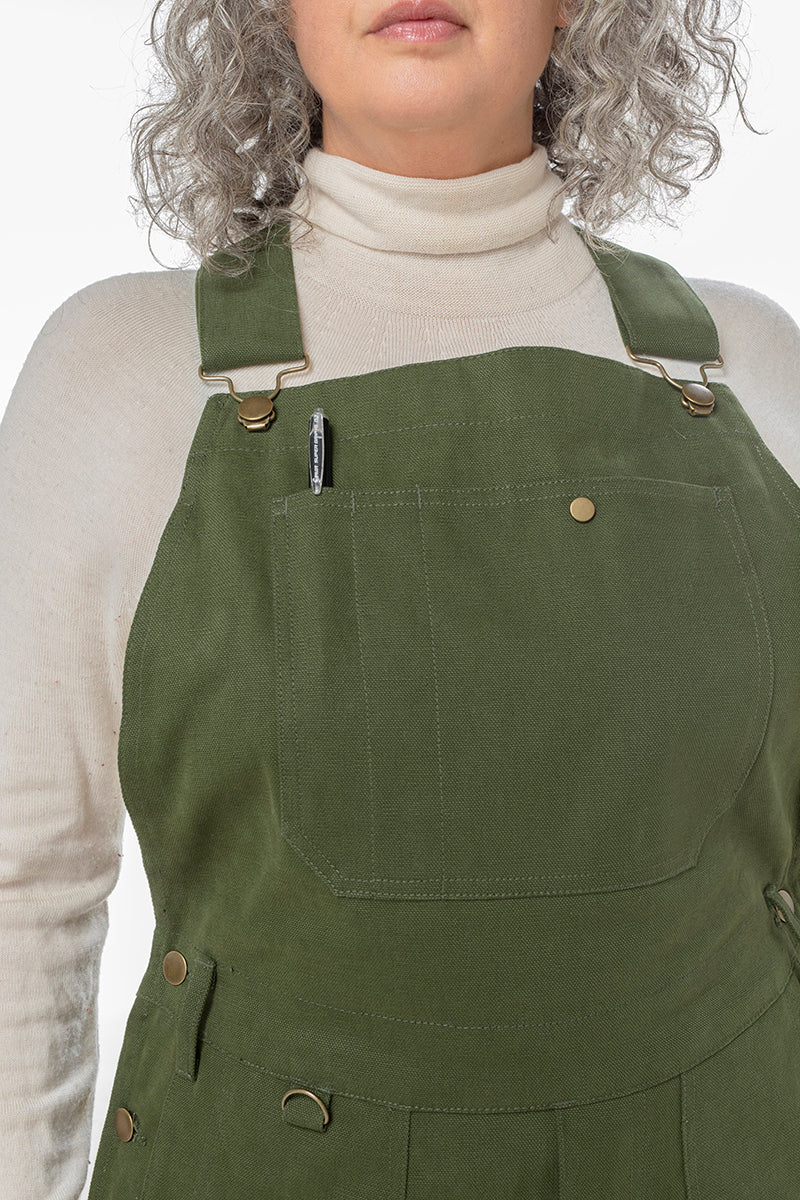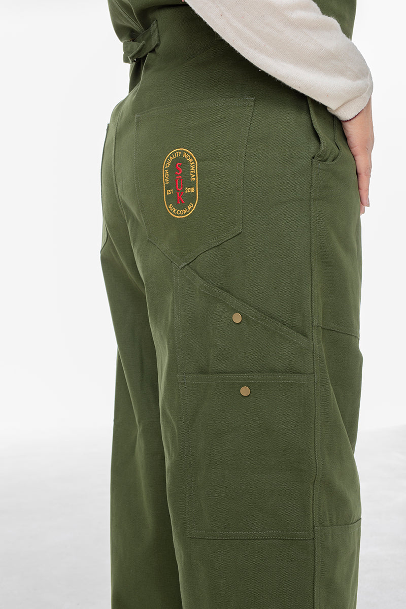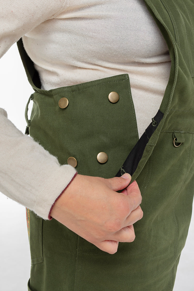 Our take on the classic bib & brace overall. Made to layer over jumpers, or to wear with nothing for a bit of side boob reveal. If you have a big belly or love someone with a big belly, be it a pregnant person, a hottie with a beer gut or someone who got lucky in the tummy department >> this suit has the flexibility to fit you out with 2 button sizing options on the waist. It also means if you are slim and lean or in between, it’s gonna work for you too