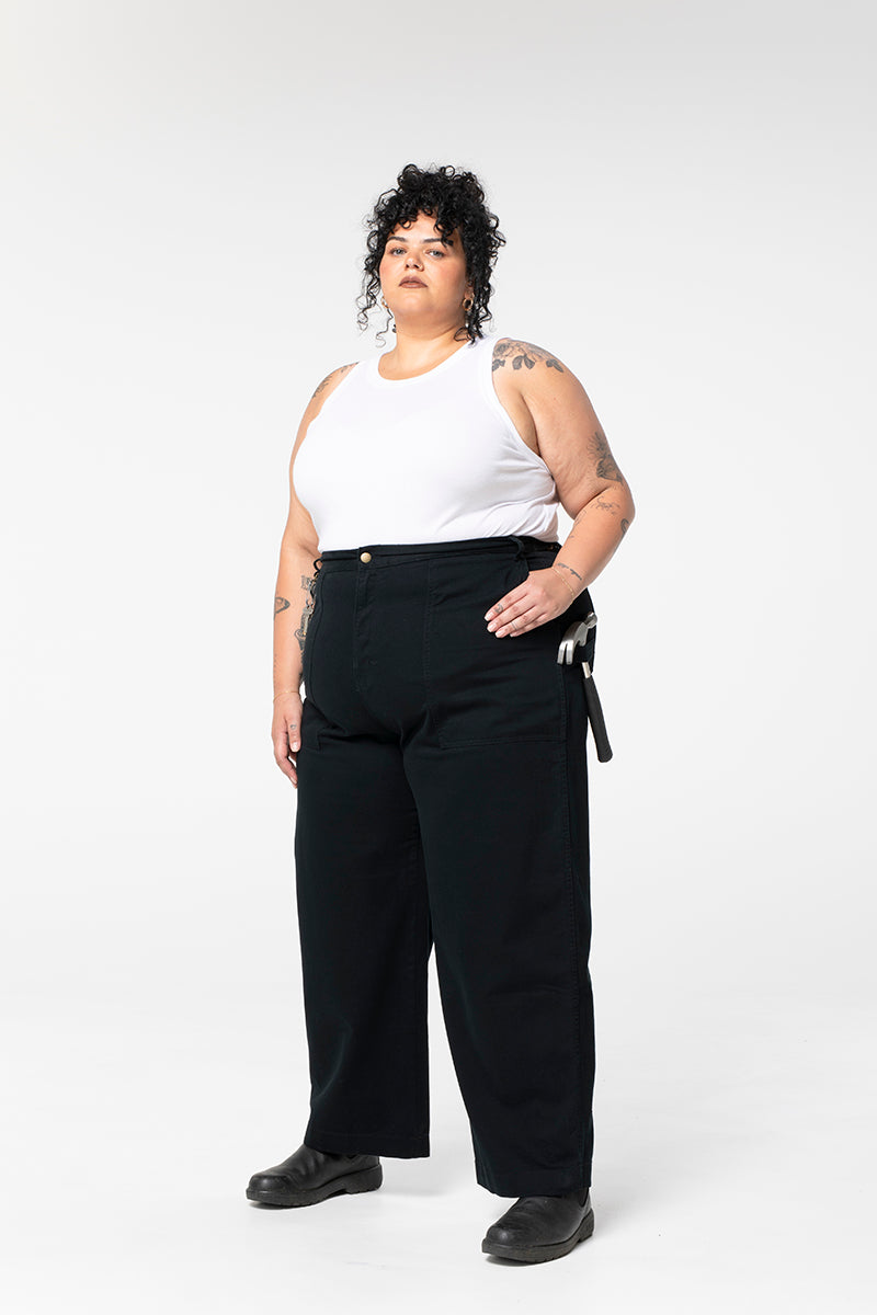 With our iconic waist adjusters, 2 extra leg pockets and a hammer holster, the Construction Pants are made for work.