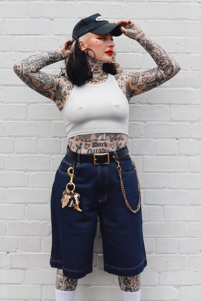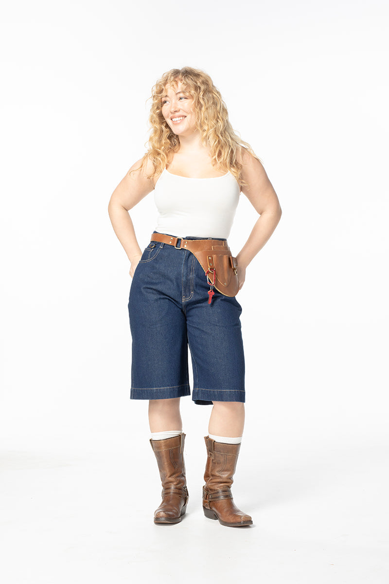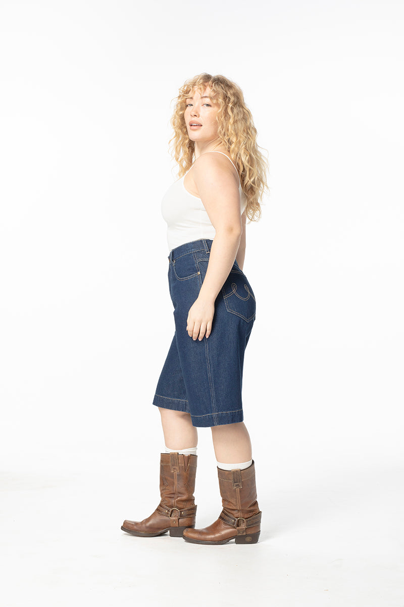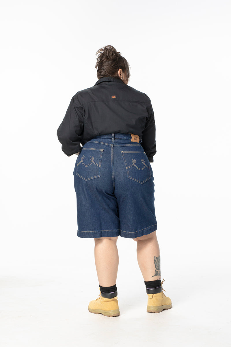 Love our long shorts? These are the denim shorts for you. This is a flattering, longer short to make them swoon. With the same synched waist and dynamite bum fit, these long shorts are not mucking about. Developed by popular demand, here is another staple for those who like a little more coverage.