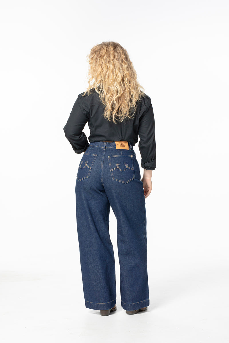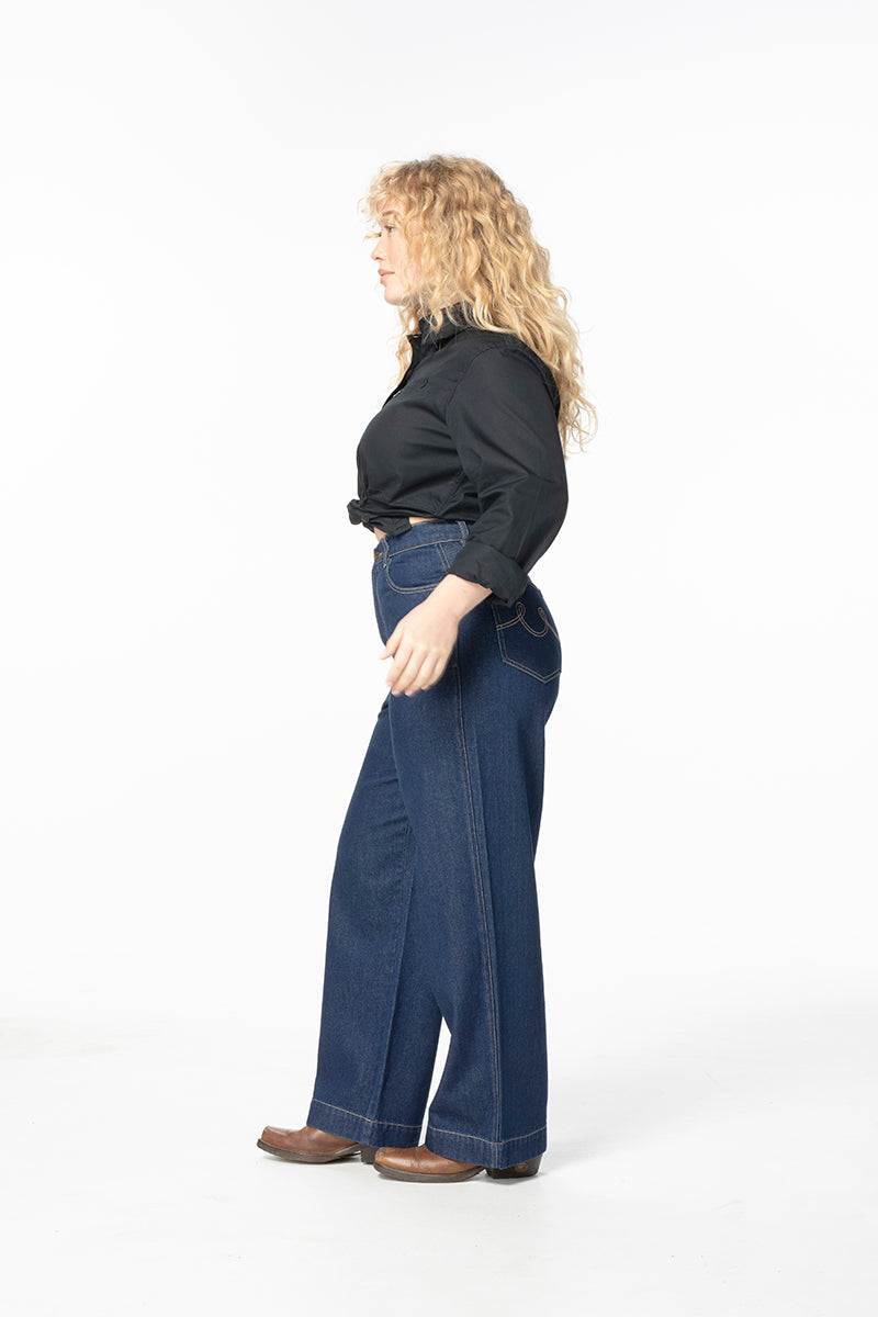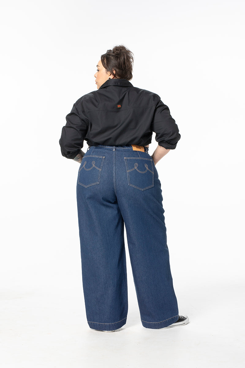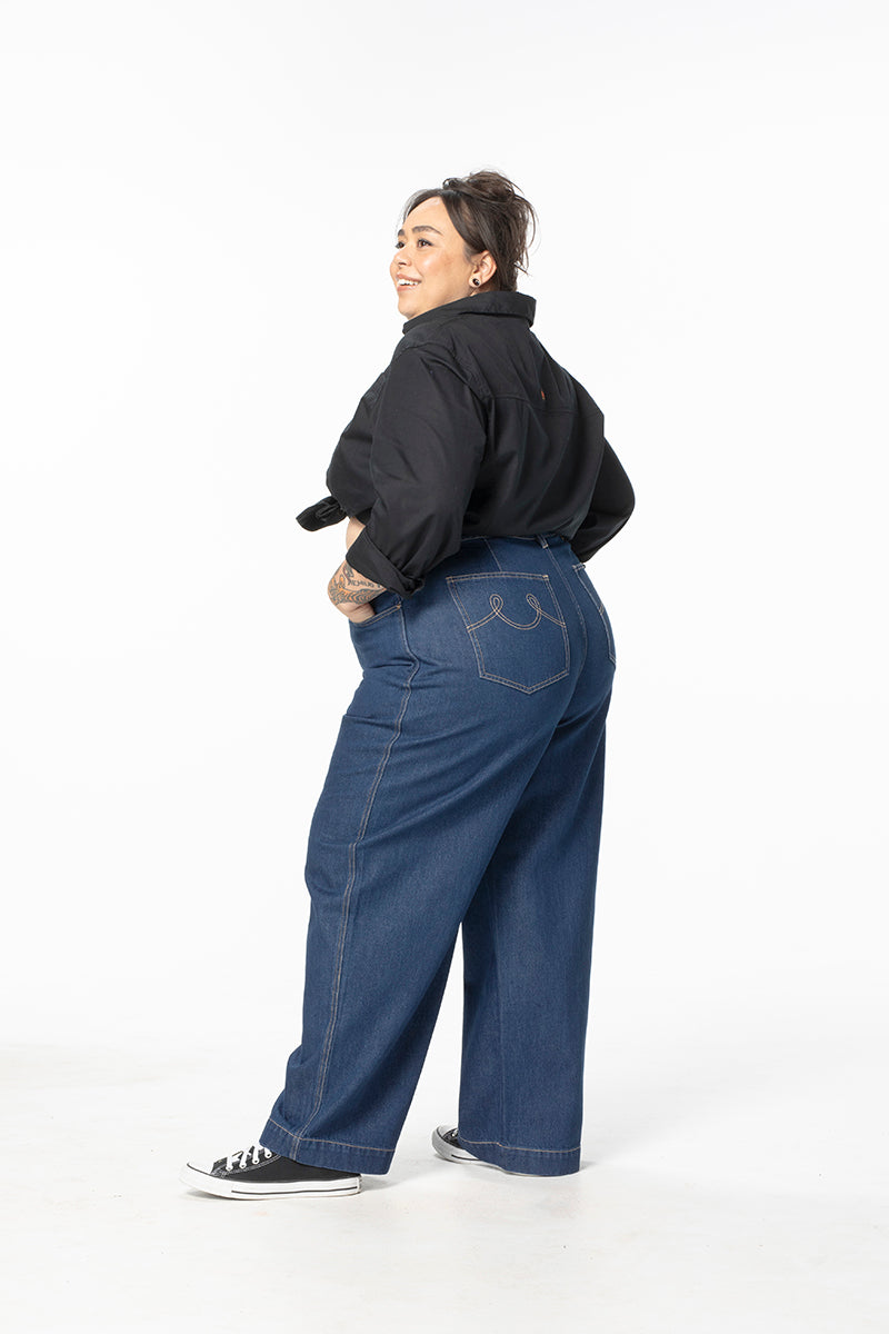 Our take on a classic wide-leg jean. Not flared or skinny but tailored for comfortable and style, giving you that perfect bum and waist fit before relaxing through the legs. These are a timeless classic, capturing all the benefits of our Construction Pant fit with the paired back style of nostalgic denim. Our new hidden waist adjusters in the inner waistband make sure you can get that absolutely perfect fit.