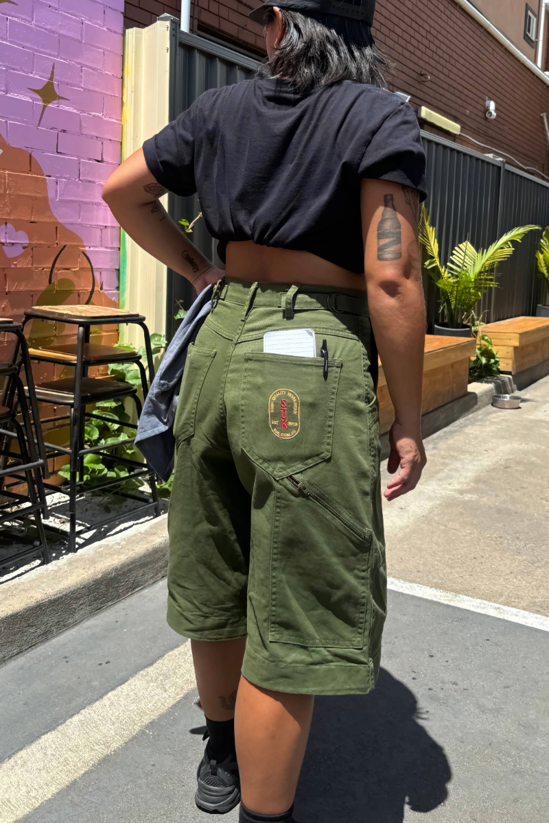 After years of requests, we took our time to develop a longer short SÜK style: with the same attention to detail and dynamite fit from size 4-30. This is a flattering longer short to make them swoon. With the same synched waist, dynamite bum fit and handy work-ready features, these long shorts are not mucking about. Developed by popular demand, here is another staple for those who like a little more coverage.
