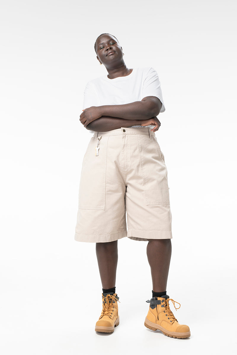 After years of requests, we took our time to develop a longer short SÜK style: with the same attention to detail and dynamite fit from size 4-30. This is a flattering longer short to make them swoon. With the same synched waist, dynamite bum fit and handy work-ready features, these long shorts are not mucking about. Developed by popular demand, here is another staple for those who like a little more coverage.