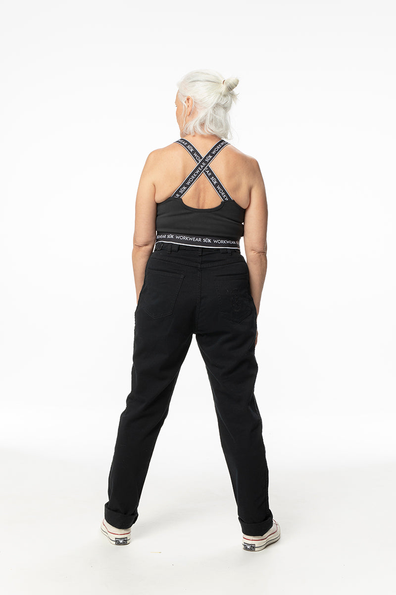 For those of us who have strict uniform standards, work backstage at a theatre or just like to keep their style on the down-low: the discreet black bum patch & matching black hardware is for you.