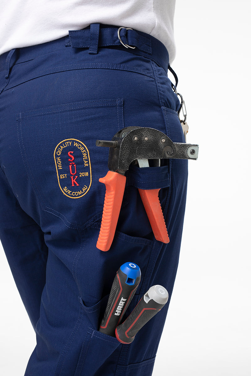 When you live outside of phone signal your only communication is the great 2 way radio. A staple part of rural life, and many other modes of serious work: the clicks of the radio are close to our heart. As it happens, these work pants have the ideal leg pocket for a 2 way, as well as 2 hammers, builder’s pencil, lip balm, a chisel, and whatever else you need along the way. Decked out & slick, these are the tradie pants that can take you anywhere.