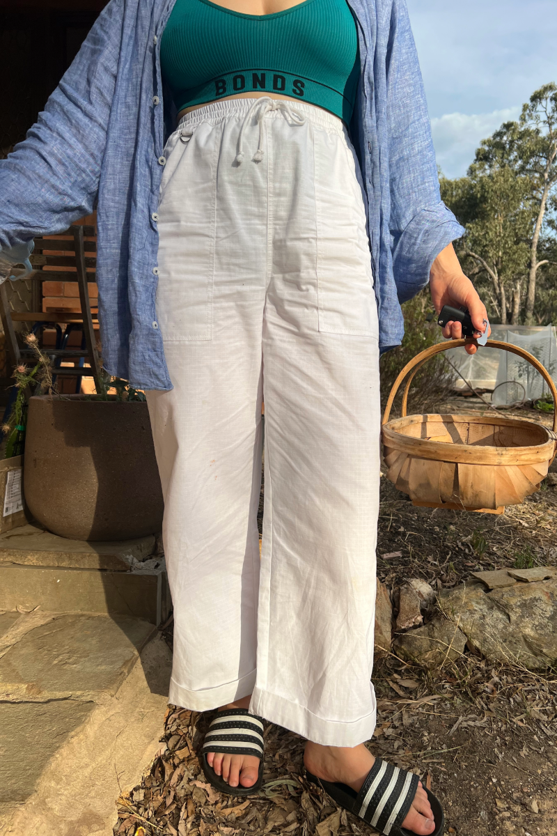 As this is a natural material, it does have it’s limitations: like most 100% cottons, with constant wear, tear and laundering, the cotton can weaken over time. So whilst our styles are designed for long term, day to day use, if you are kneeling on abrasive surfaces regularly, we suggest to invest in some knee pads to avoid rips and holes.