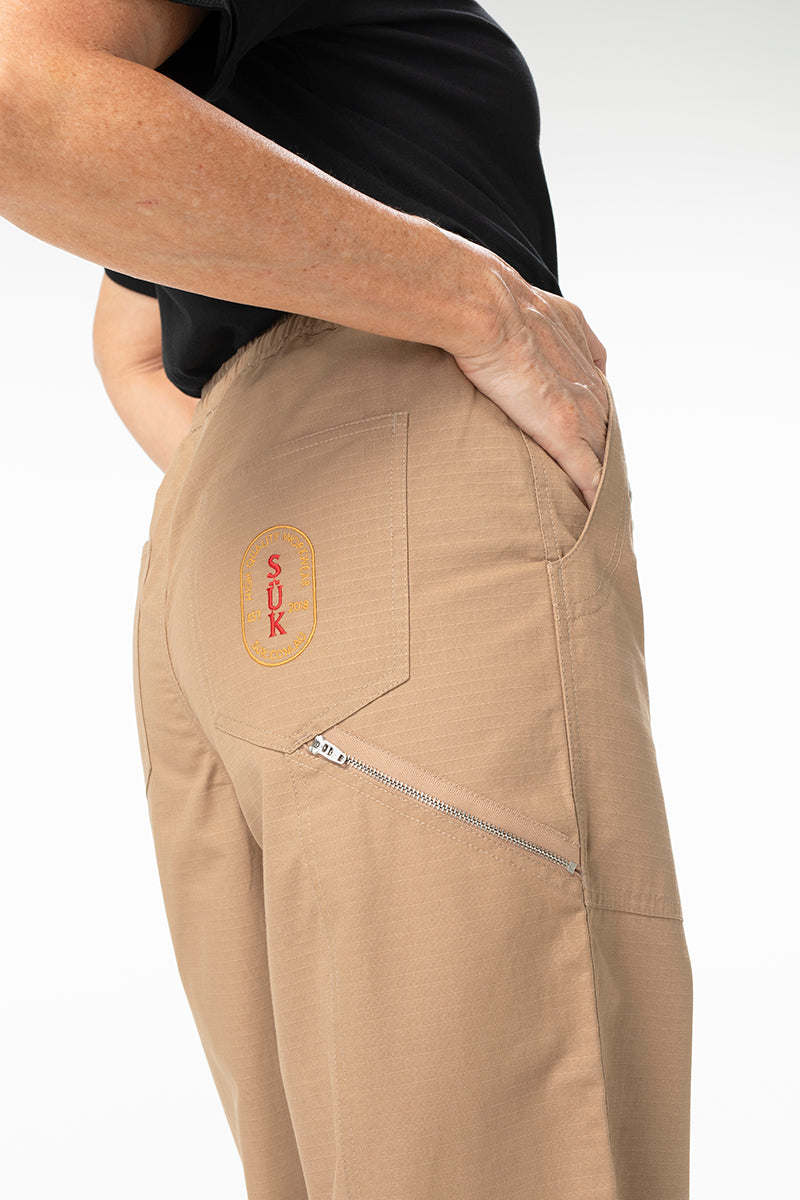 Same Perfected SÜK fit, with an elastic waistline. With a drawstring for adjustability and zip-leg pocket for added functionality. Inspired by scrub-wearing-workers, these pants fit so well and feel so good they seamlessly translate from clinic floor to cocktail club.