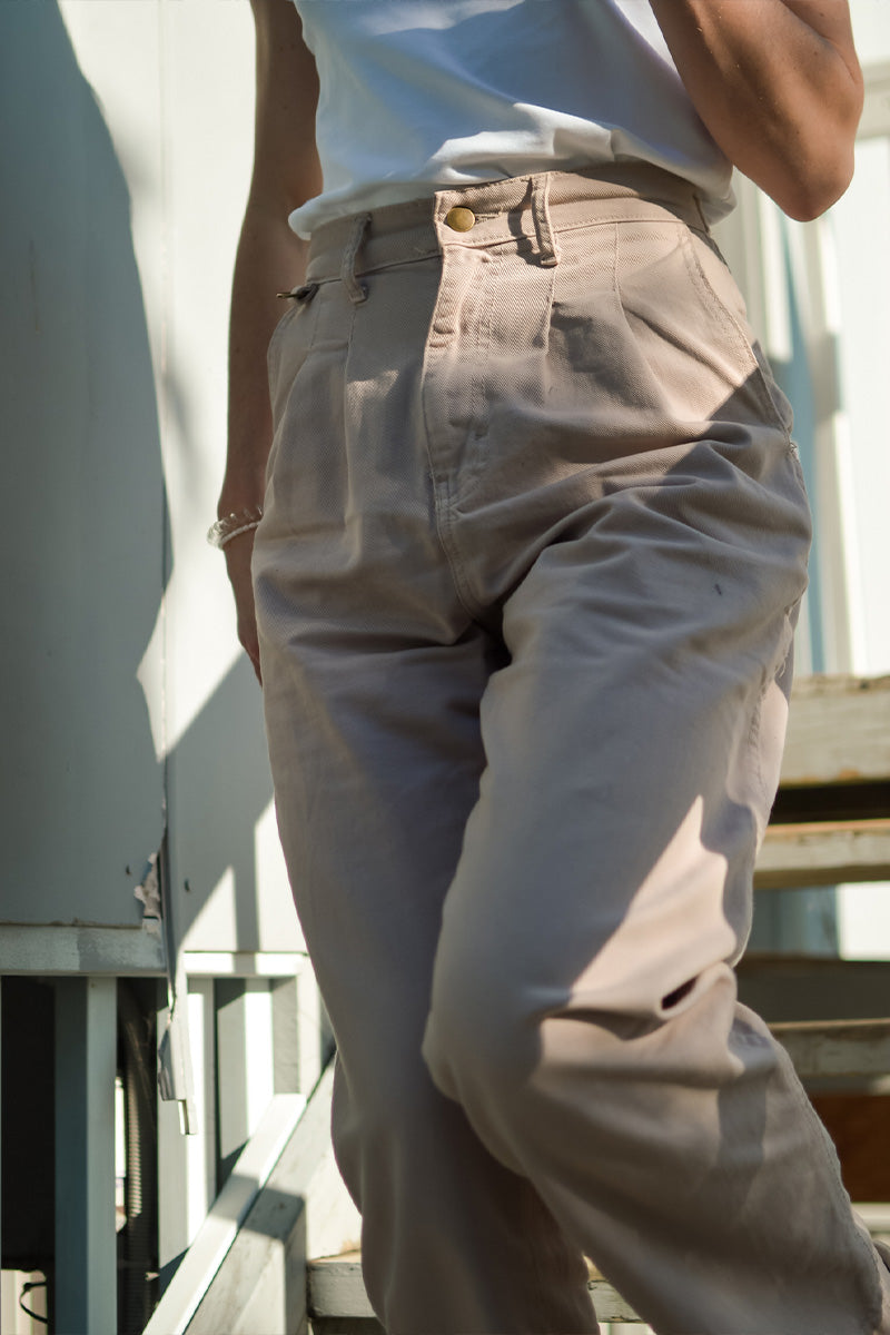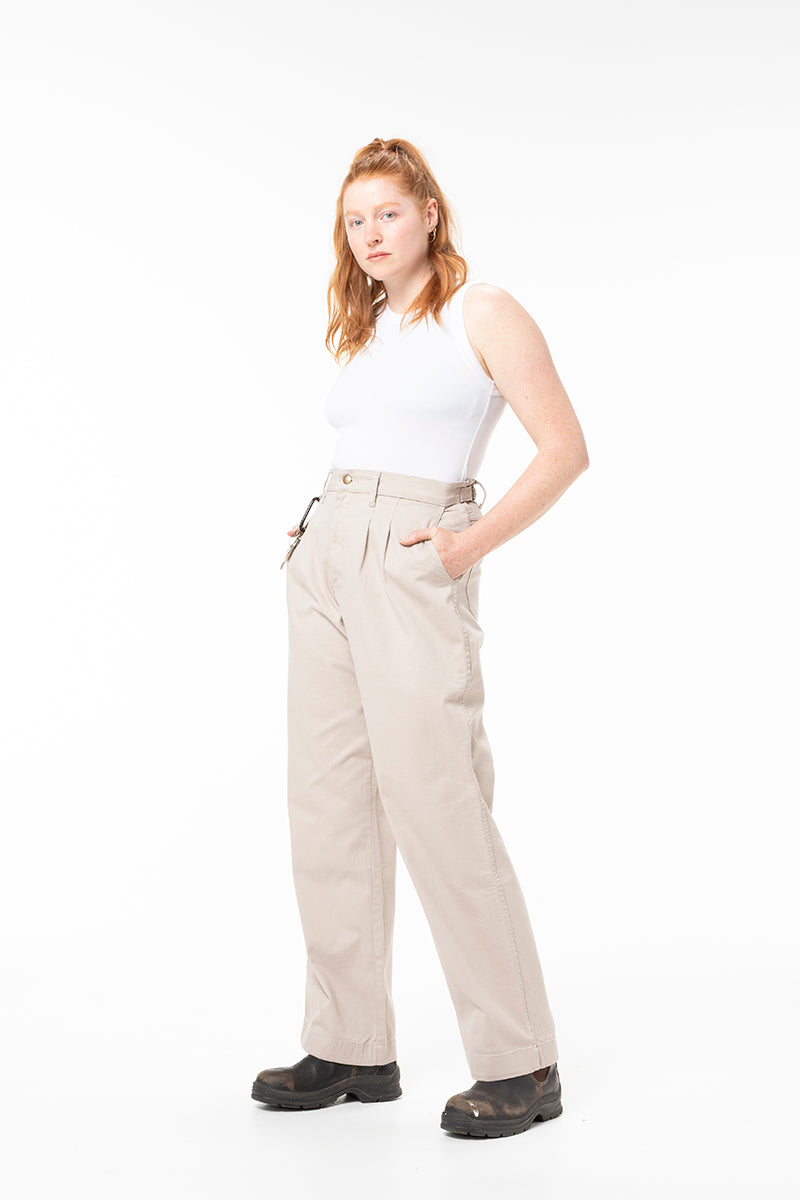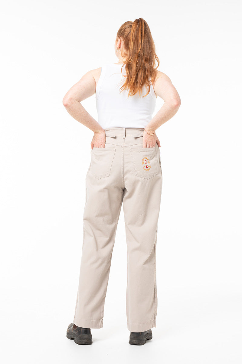 Growing up on cattle stations throughout QLD & NSW, these work pants are a nod to the long days, dust, isolation, and bush doofs our founder nostalgically remembers from her childhood and adolescence. A simple, durable work pant that is equally at home behind a bar, in a theatre or in the cattle yards. Simple, refined, flattering & ever so slightly hick.